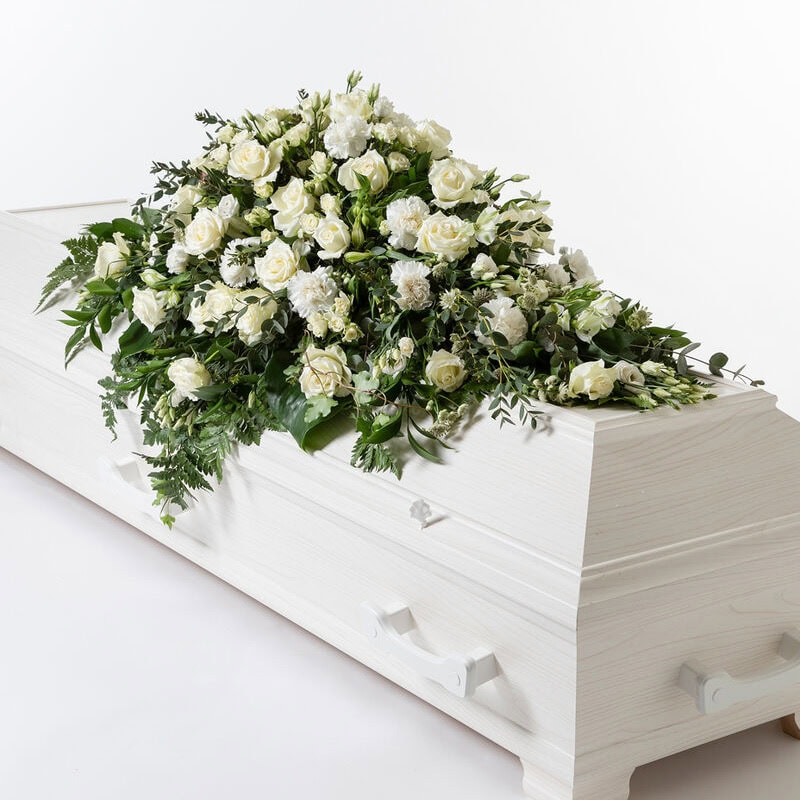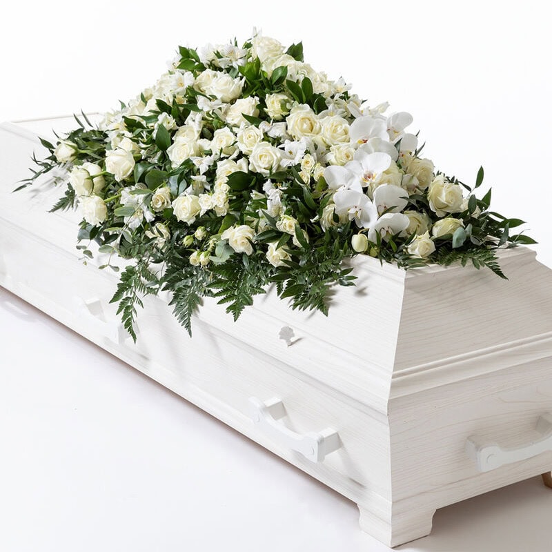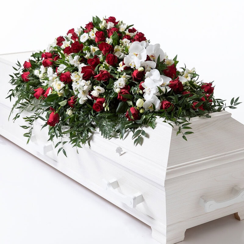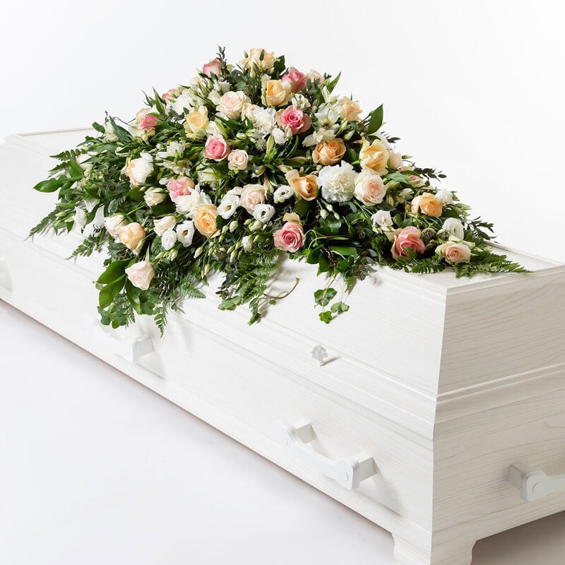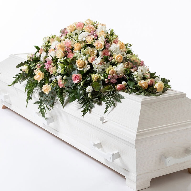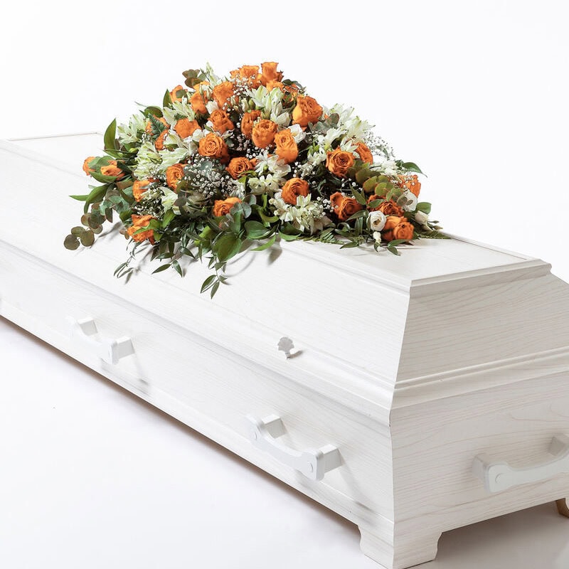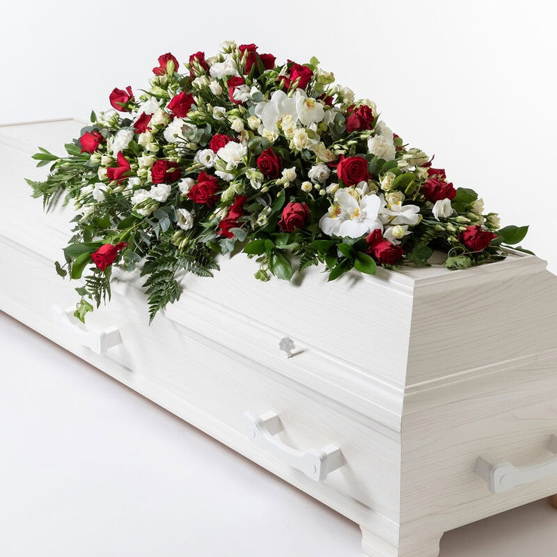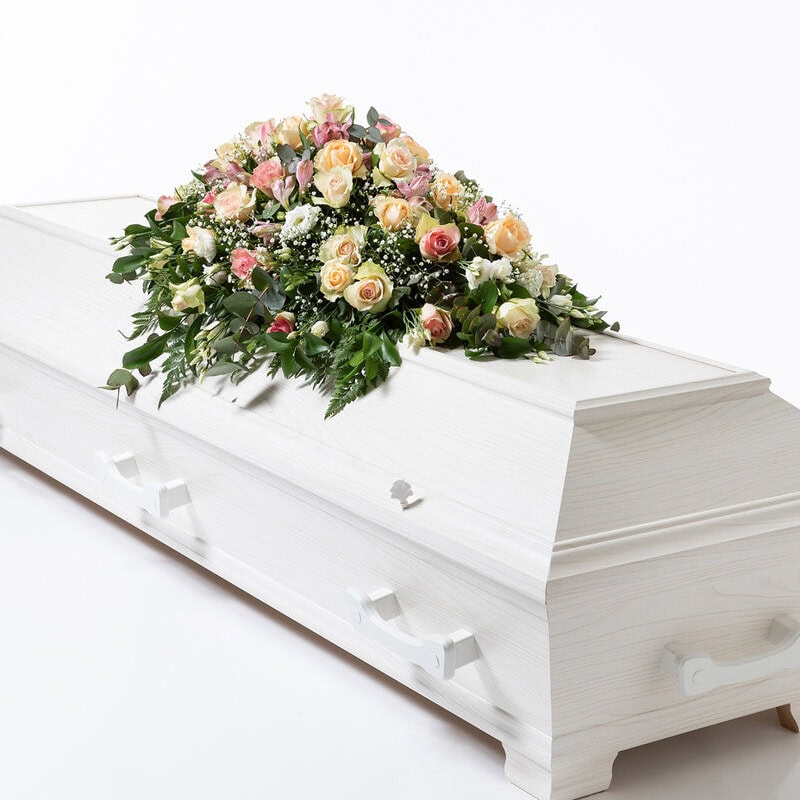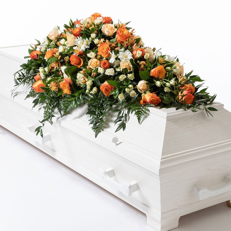 Kistedekorasjon ligger på kisten, er fra den aller nærmeste familien/pårørende, og er 100 % nedbrytbare begravelsesblomster.
